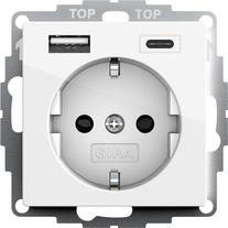 Base de SHUCKO de 16 A y 250 V - con protección ampliada contra contacto accidental y alimentación USB Tipo A/C